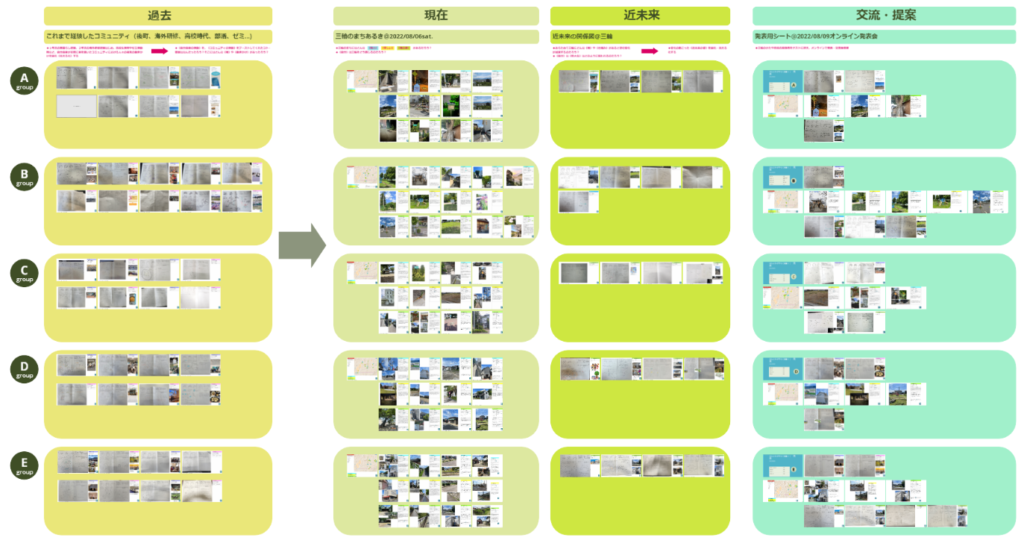 2022年7~8月の集中講義「コミュニティデザイン各論I」で作成したワークシート一式(@MIRO)を公開いたしました。環境によっては少々表示に時間がかかるかもしれませんが、下記リンク先からクローズアップしてご覧いただきますと、充分に1枚1枚のワークシートの描き込みを読み取っていただけます。